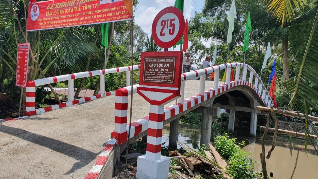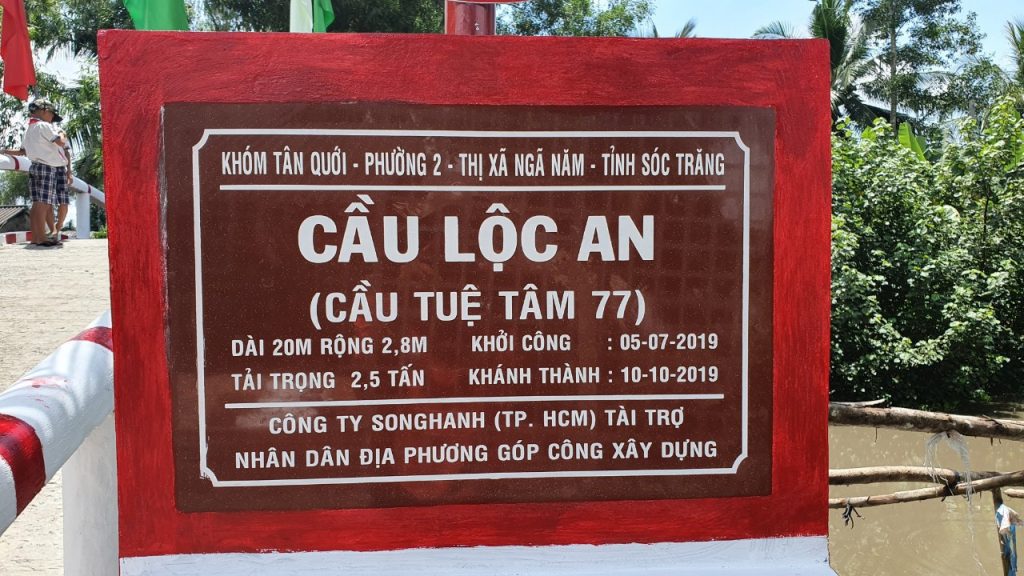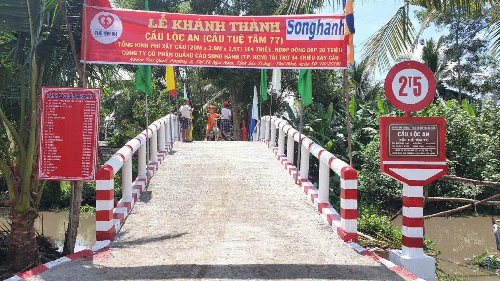 Ngày 10/10/2019, Song Hành phối hợp cùng với nhân dân địa phương khởi công xây dựng chiếc cầu Lộc An ( Cầu Tuệ Tâm 77), tại Khóm Tân Quới, Phường 2, Thị Xã Ngã Năm, Tỉnh Sóc Trăng.